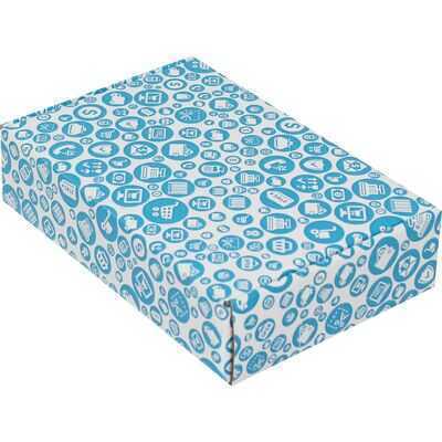 Kutu ebatları 24*16,5*6cm (Boy*En*Yükseklik) olup;1 adet beyaz,1 adet saman ve 1 adet kraft kağıdın birleştirilmesiyle oluşturulmuş oluklu mukavvadan üretilmiştir.